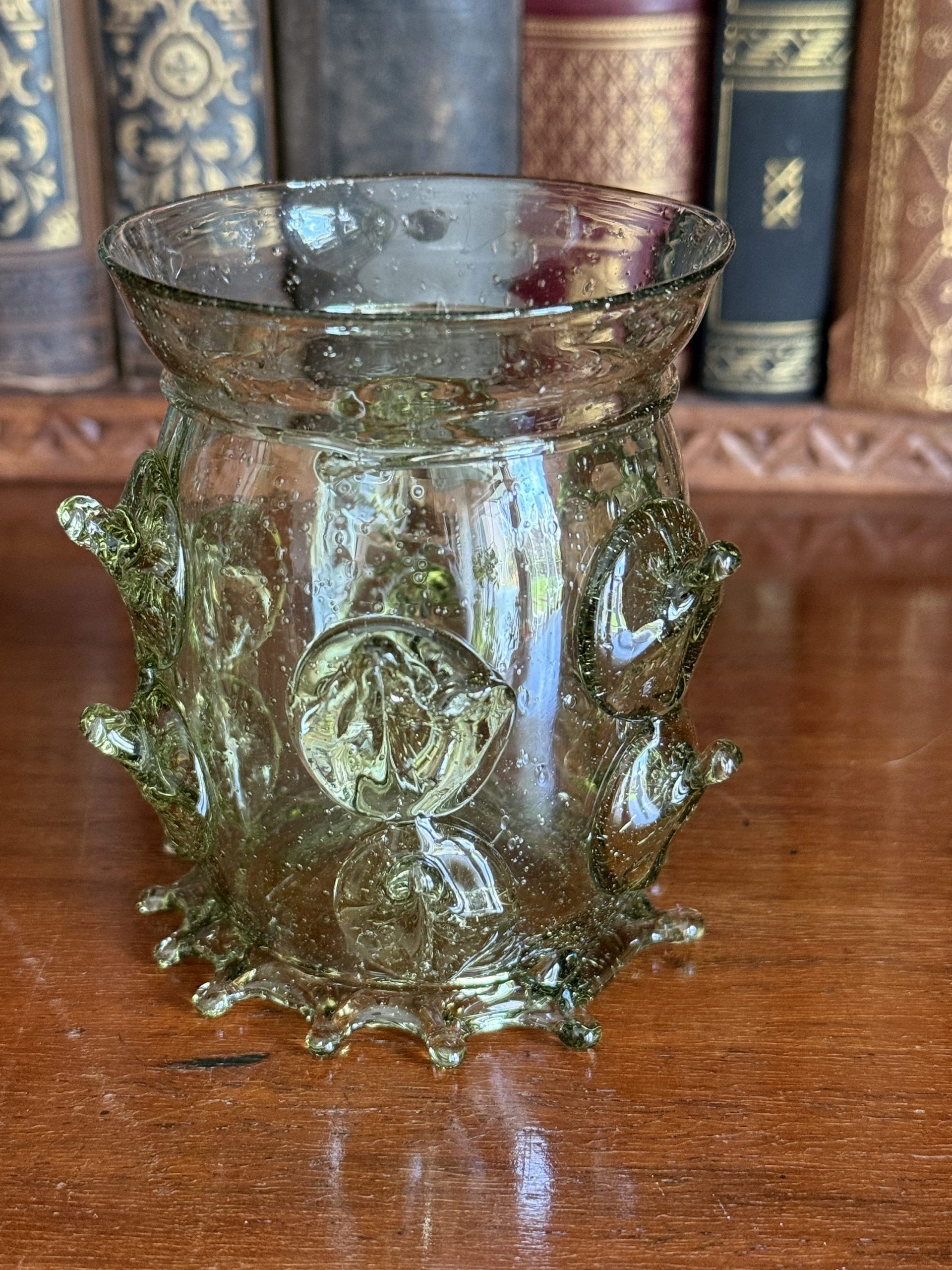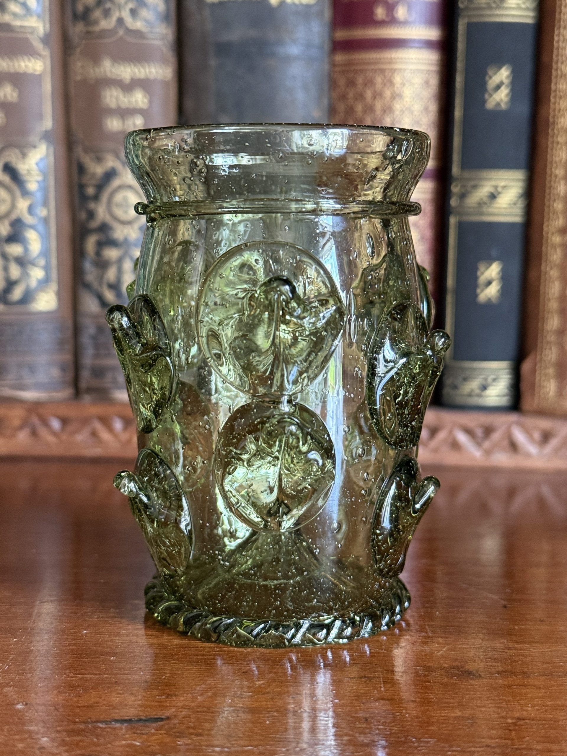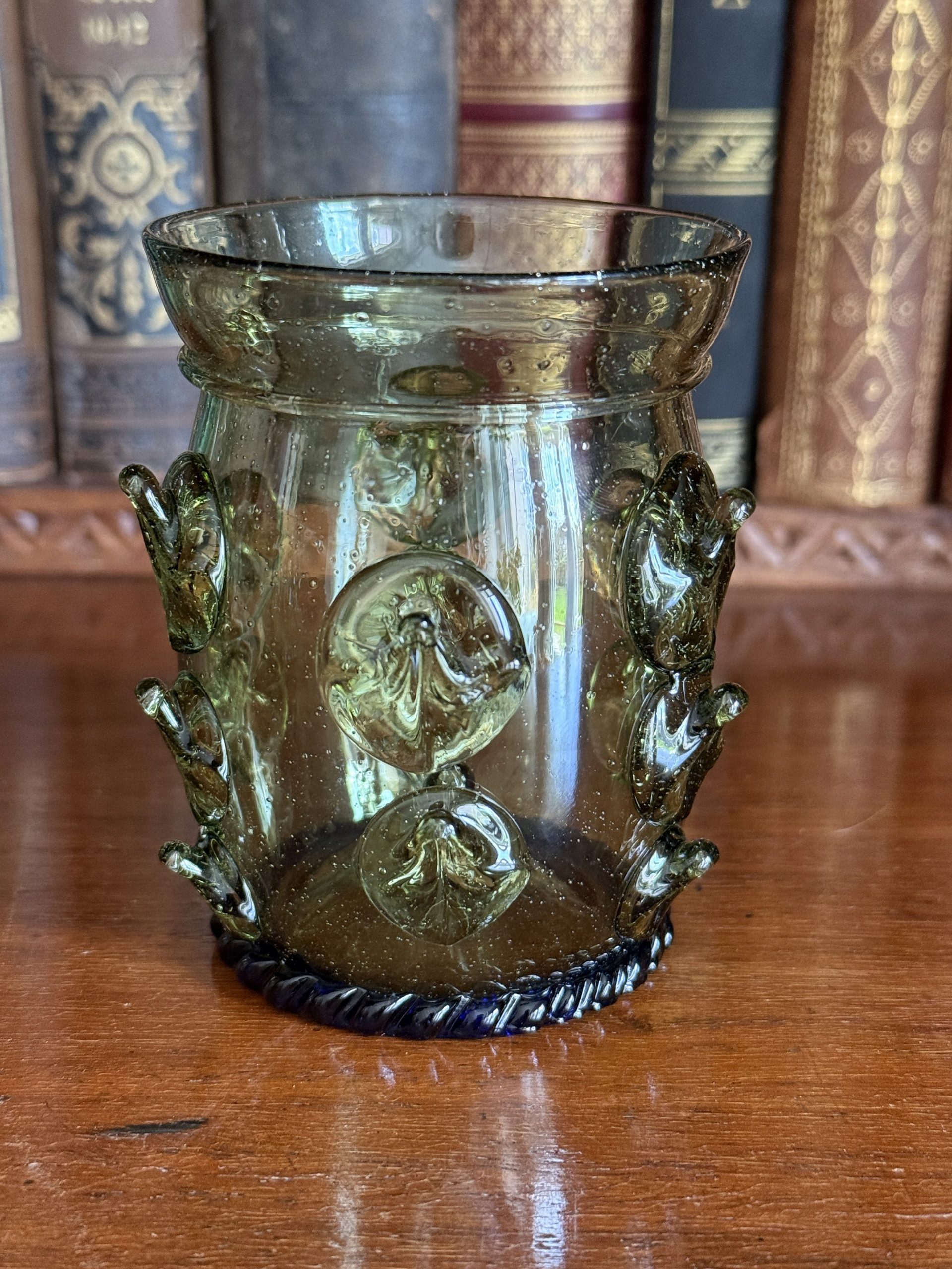 Matthias Schäfer beschäftigt sich schon seit Jahren mit den Glasformen des Mittelalter, aber auch der Renaissance und lässt diese Gläser nach historischen Funden replizieren. Die Gläser entstehen in Zusammenarbeit mit einer Werkstatt in Tschechien, die sich auf historische Techniken spezialisiert hat. Dort werden Formen und Farben nach mittelalterlichen Vorbildern und den wenigen bekannten Originalfunden umgesetzt. Die Farbsande stammen teilweise aus eigener Sammlung oder den jeweiligen Fundorten des Originals, was jedem Stück eine besondere Beschaffenheit verleiht.