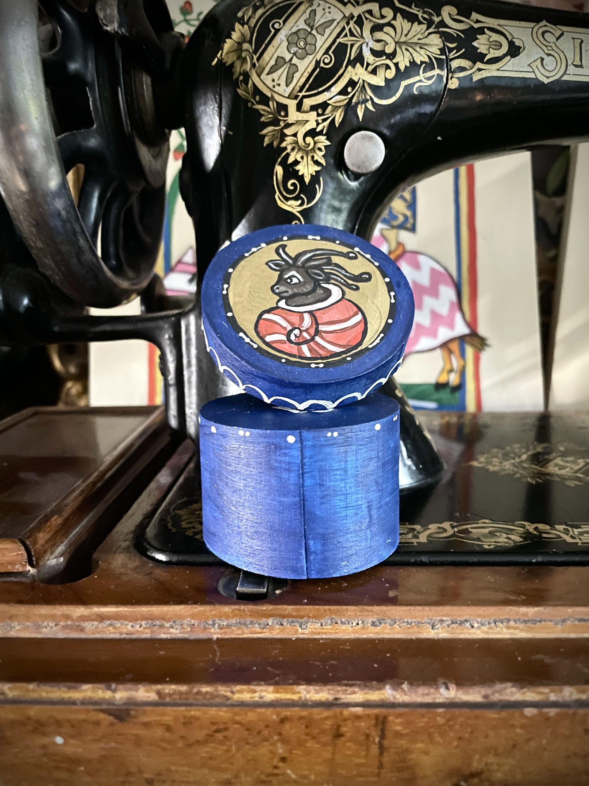 Handbemalte Spandose in verschiedenen Größen. Motive: Kuriose Buchkunst Acryl auf Holz